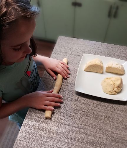 - Get 1 of the wedges and with both hands, roll into approx. a 12″ long log.