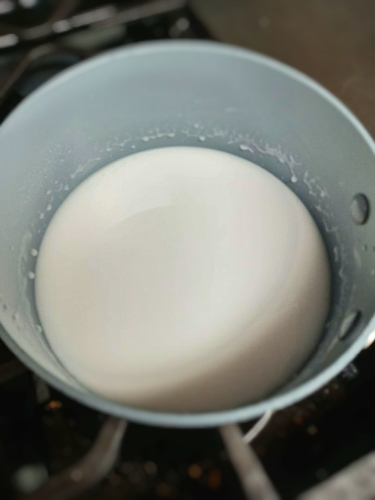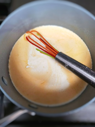 - Place the saucepan on medium heat and bring to a slow simmer, making sure to whisk it once in a while.