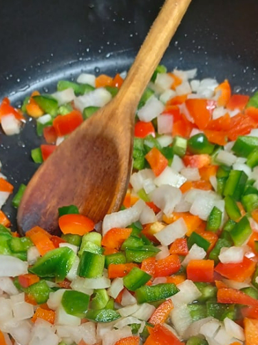 - Add in your onions and peppers and sauté until tender. Now add in your minced garlic and sauté for an extra minute, just to cook out the raw garlic flavor.