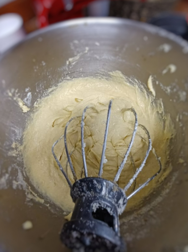 - Beat in the eggs, adding one at a time until fully incorporated.
