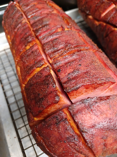 - After 3 hours, glaze the smoked bologna with our Classic Barbecue Sauce and smoke for another 30 minutes to allow the sauce to caramelize and set.